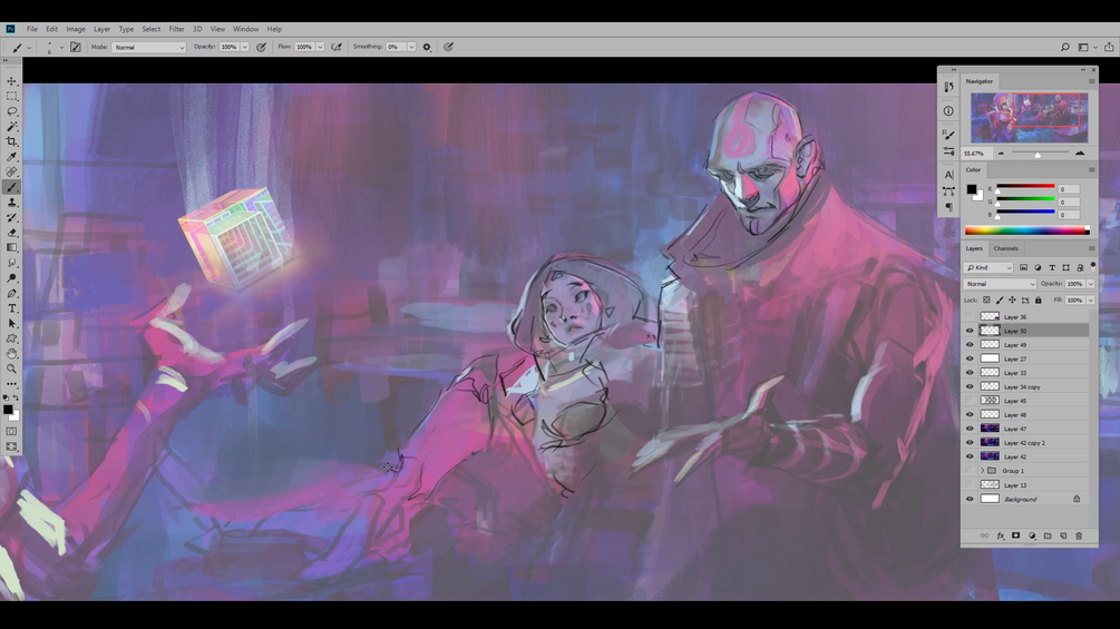 Sketching + Painting a cyberpunk conceptĀ